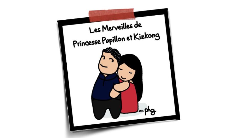 J’ai fait une belle rencontre inattendue et j’ai choisi de la représenter en trois volets, remplis de métaphores. C’est l’histoire d’un papillon, c’est-à-dire moi, transformée en papillon, qui est poursuivi par un monstre. Le papillon trouve refuge derrière un menhir, et ce dernier semble exercer une sorte de pouvoir protecteur, arrêtant la poursuite du monstre. Finalement, le papillon remercie le menhir, et à cet instant, la magie opère. Que se passe-t-il à ce moment-là ? Une idée ?
